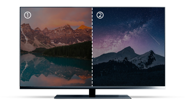 2. 4개의 HDMI 입력 소스 중 2개의 화면을 좌/우 채널로 출력
