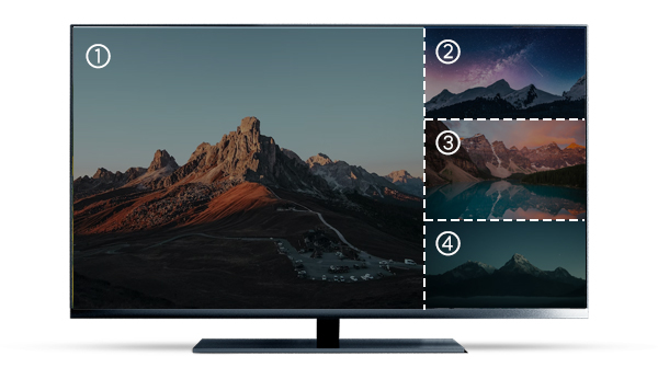 3. 4개의 HDMI 입력 소스를 크고 작은 4개의 화면으로 출력